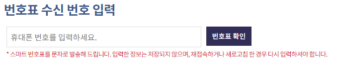 1 .먼저 번호표 수신 번호 입력에 자신의 휴대폰 번호를 입력하고 번호표 확인을 누릅니다.