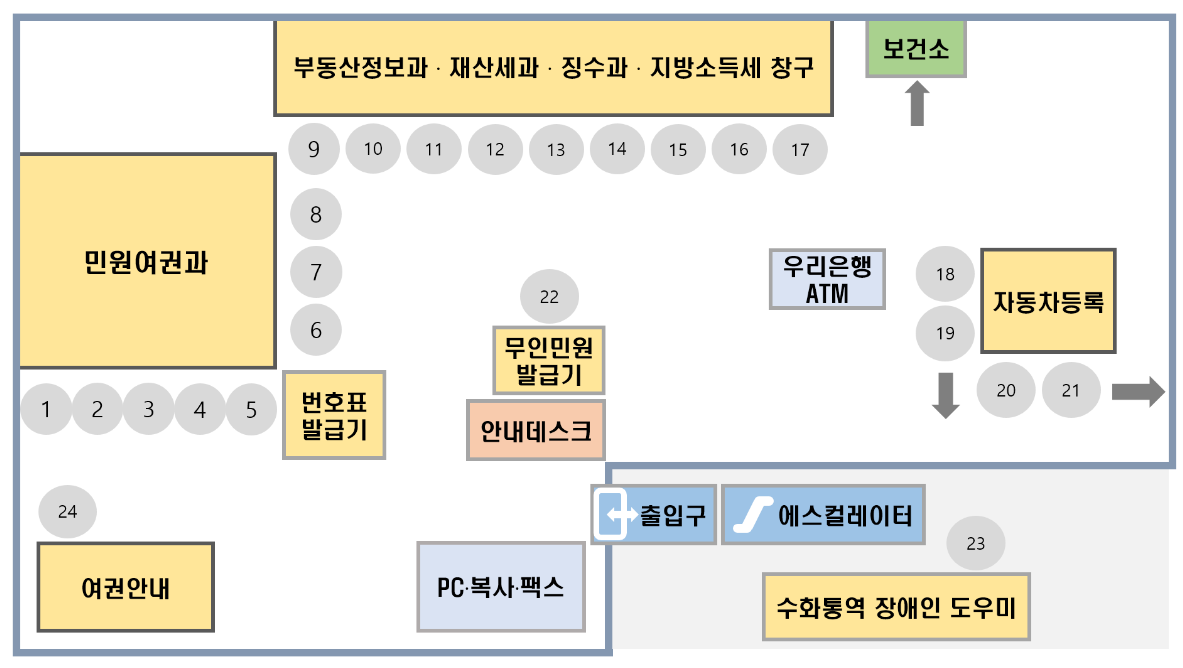 여권과 업무 시간 : 평일 09:00~18:00 (토요일/일요일 공휴일을 제외)