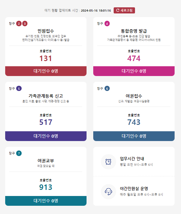 양천구청 여권민원 대기현황
